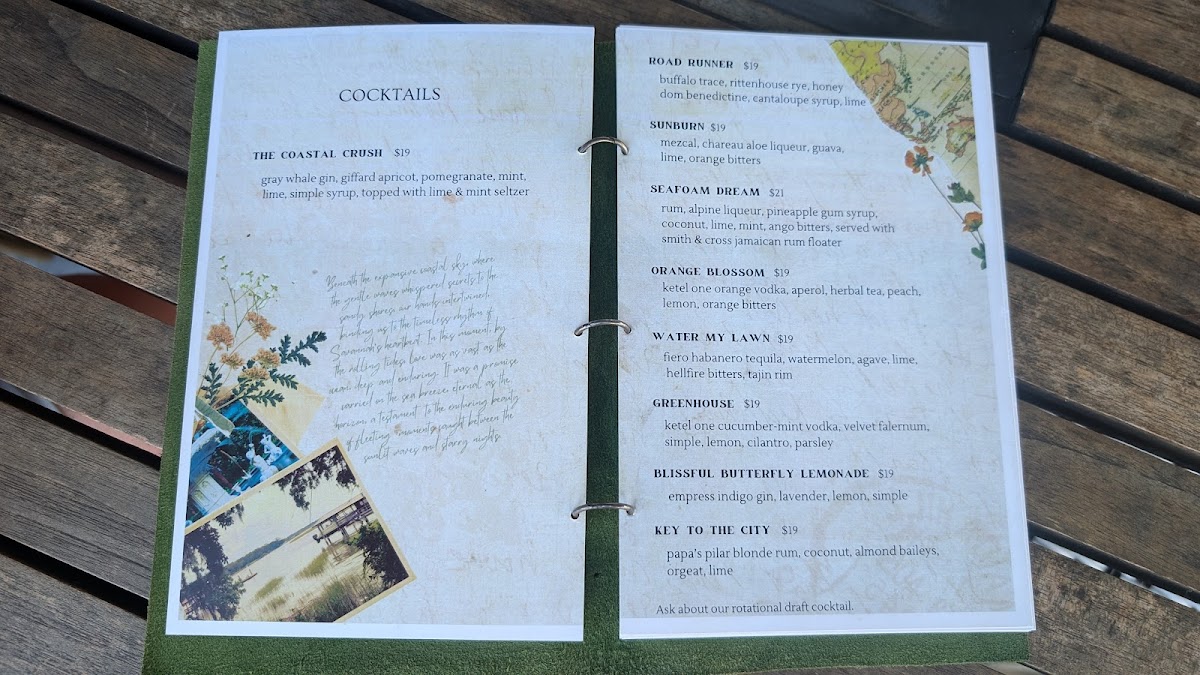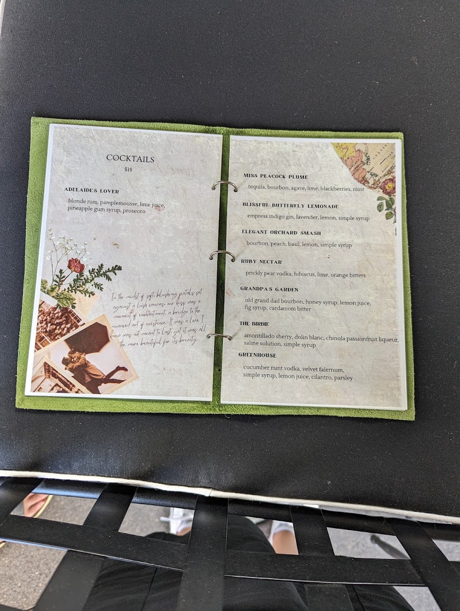 On the drink side, the focus is on refreshing, well-balanced cocktails, including signature frozen libations such as a frozen rosé and creative options like the Ruby Nectar or Adelaide’s Lover. Classic choices like the Manhattan or a crisp glass of sparkling wine also fit seamlessly into the setting, inviting guests to savor each sip while enjoying the view.