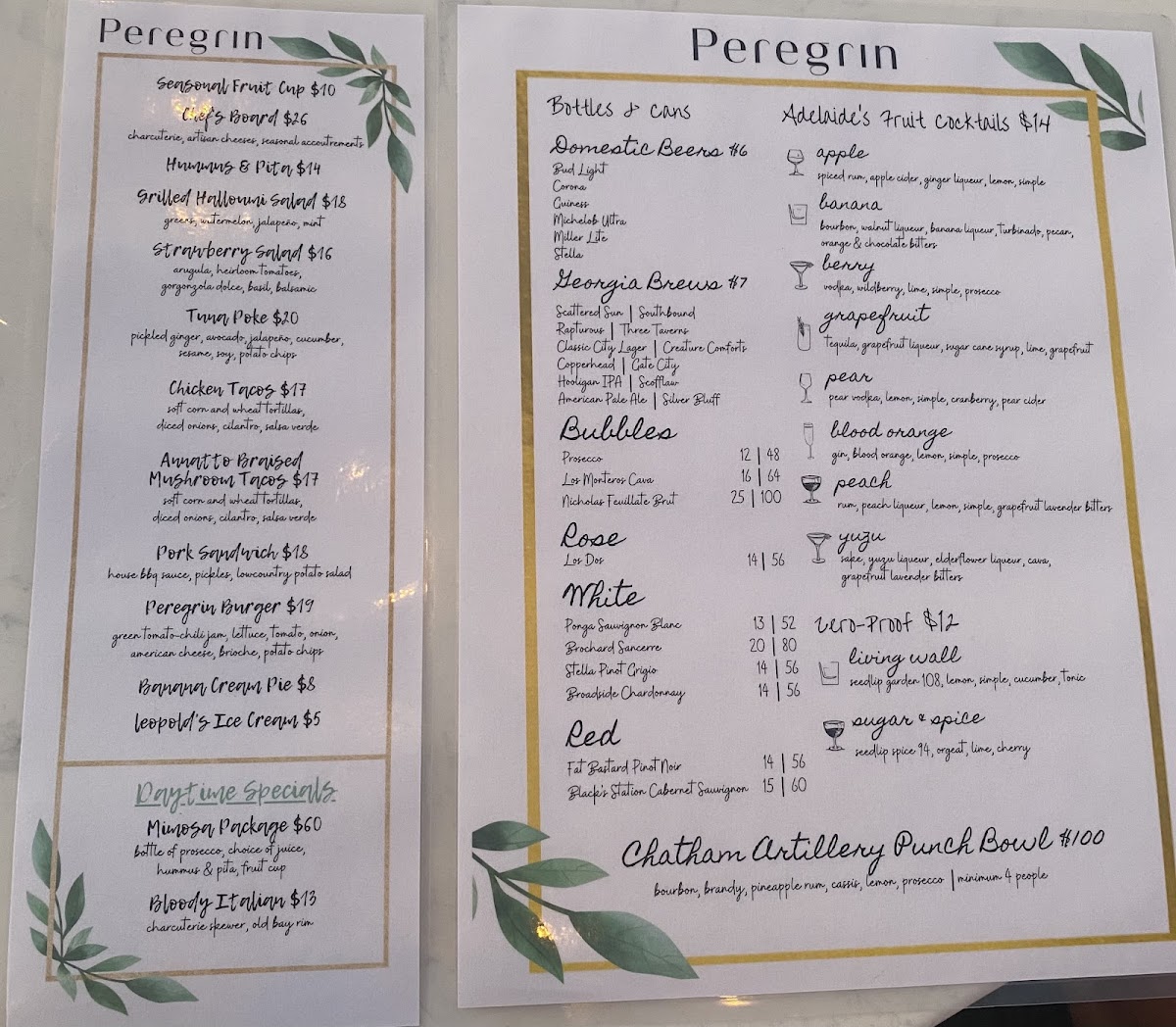 Peregrin Menu